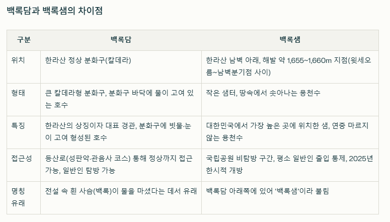 - 백록담 vs 백록샘, 무엇이 다를까?